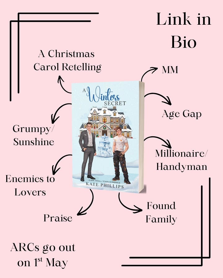 A Winter’s Secret by Kate Philips: A tense winter romance about embracing love, and learning to see the world in a different light. Need some spice and some enemies-to-lovers action? Sign up for it right here!