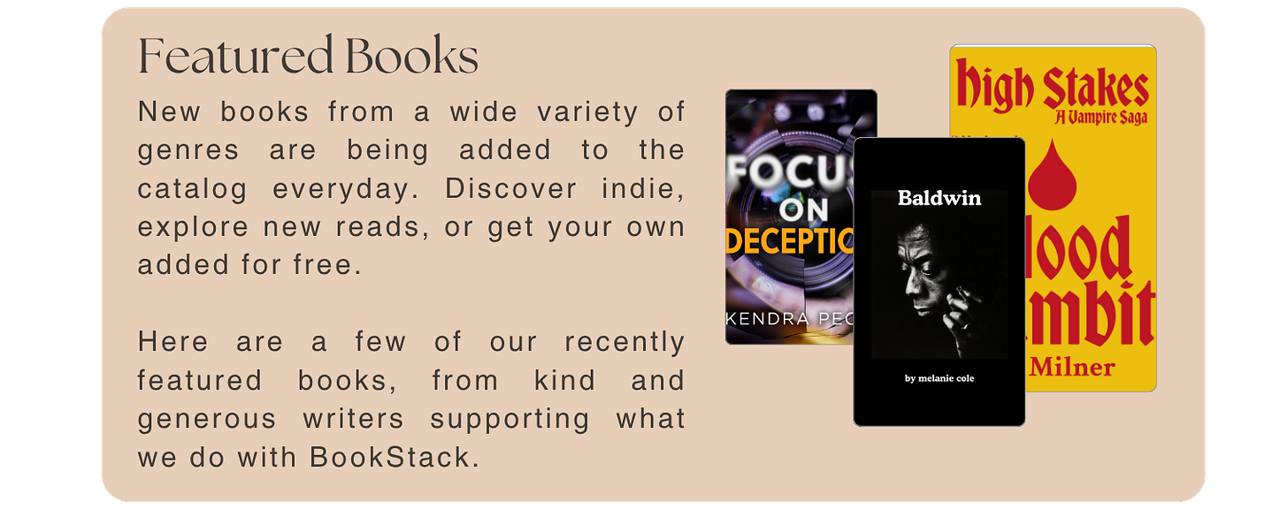 While getting books listed in our catalog is free, some authors go the extra mile and purchase a featured book listing. So, let’s highlight a few!