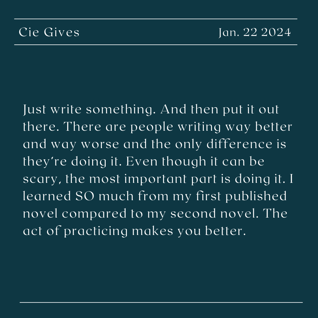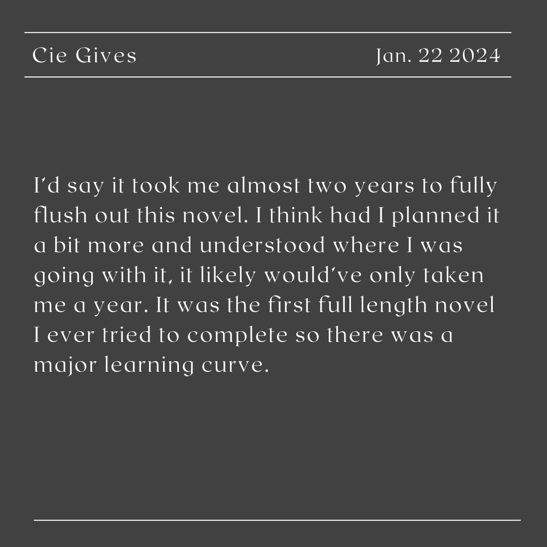 Because of everything going on, I wasn’t sure if I should scrap the review I was planning on doing, either. The author of the book, Cie Gives, answered some interview questions I had for them— and I just knew I needed to find a way to be able to incorporate those into some sort of spotlight. At one point I was thinking I could include as part of a book recommendations post. Then after realizing that wasn’t going to work either, I decided to finally double down on writing the book review.