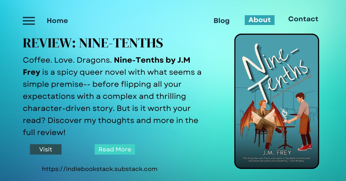 Coffee. Love. Dragons (and spice). Check out my full review of J.M Frey's queer romance novel Nine-Tenths.