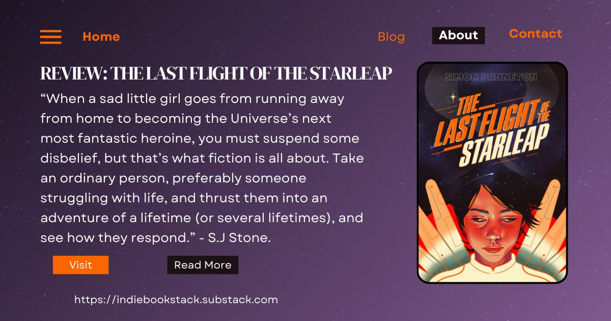 for allowing us to feature your review of Starleap on BookStack! Being able to bring new attention to as many stories and voices is at the very core of what BookStack is about. As a reminder, S.J has a website, Threads, Instagram, and Tumblr. But, he’s also here on Substack, too! (Hence all the mentions). So if you’d like to show our esteemed guest your support, go ahead and give him a subscribe.Or if you’d like to support what BookStack is — a directory and publication dedicated to helping you discover new indie reads, or your next favorite author. Go ahead and hit our subscribe button. And if you want one of your own posts or reviews to be featured, go fill out our post submission form.