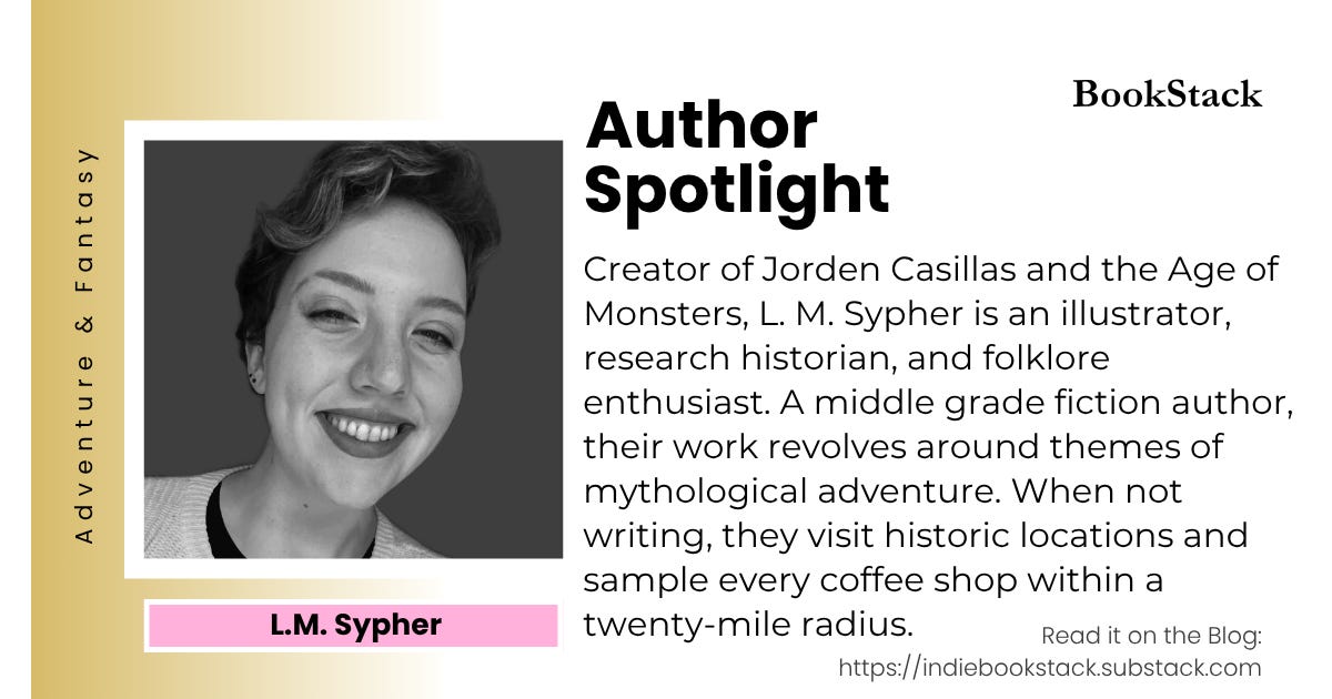 , go subscribe to them on Substack. They also have a pretty nifty website if you’d prefer to check that out.Creator of Jorden Casillas and the Age of Monsters, L. M. Sypher is an illustrator, research historian, and folklore enthusiast from the Washington D.C. area. A middle grade fiction author, their work revolves around themes of mythological adventure, with thrilling action sequences and creatures beyond your wildest nightmares. When not writing, they visit historic locations, lead ghost tours, and sample every coffee shop within a twenty-mile radius. Their constant writing companion is an enormous orange tabby named Copernicus, who thinks he’s the center of the solar system-and he’d be right.