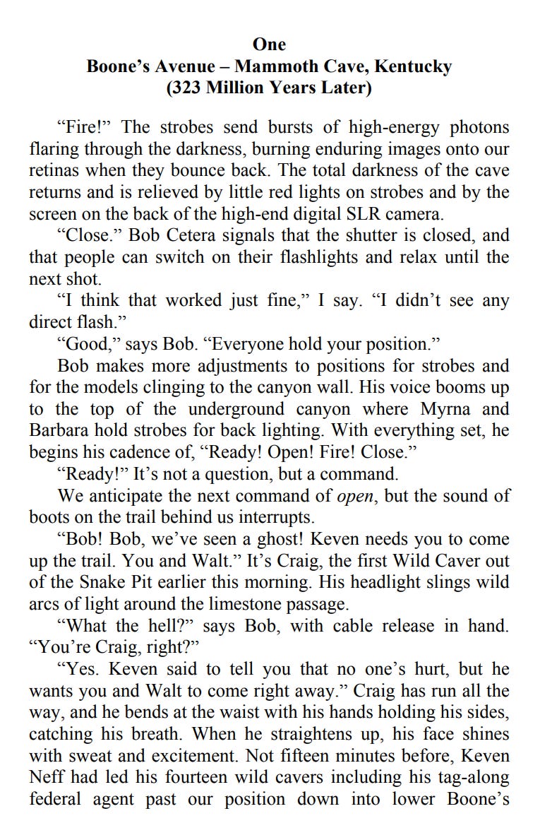 I based the main character, Bob, a Mammoth Cave interpretive ranger and cave guide, on a close friend from my guiding days. He let me help out with after-hours photography trips into the cave and has remained a life-long friend. The character arc for Bob has transformed from classic, interpretive cave guide to amateur sleuth, but over the three books of the series, he moves away from guiding to more of a liaison between cave visitor management and special events in the cave. And, of course, he has aged, and his ability to walk miles through the cave becomes reduced, but he keeps moving. Slower than he was, but still moving.